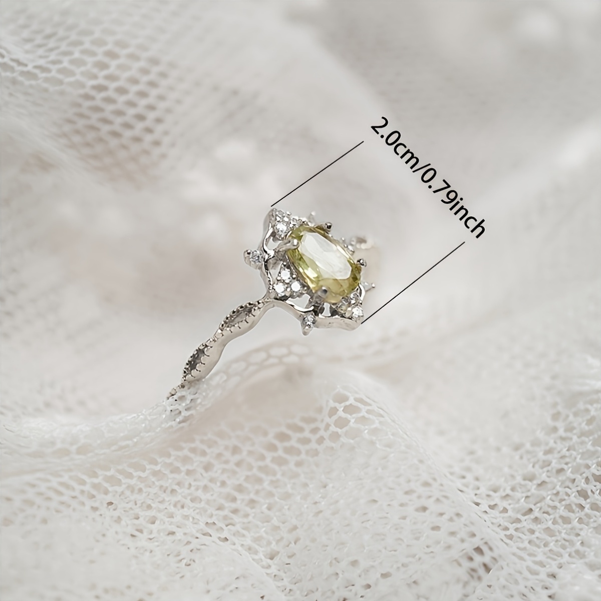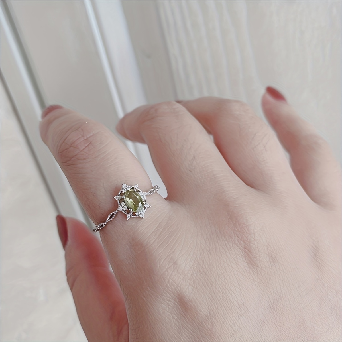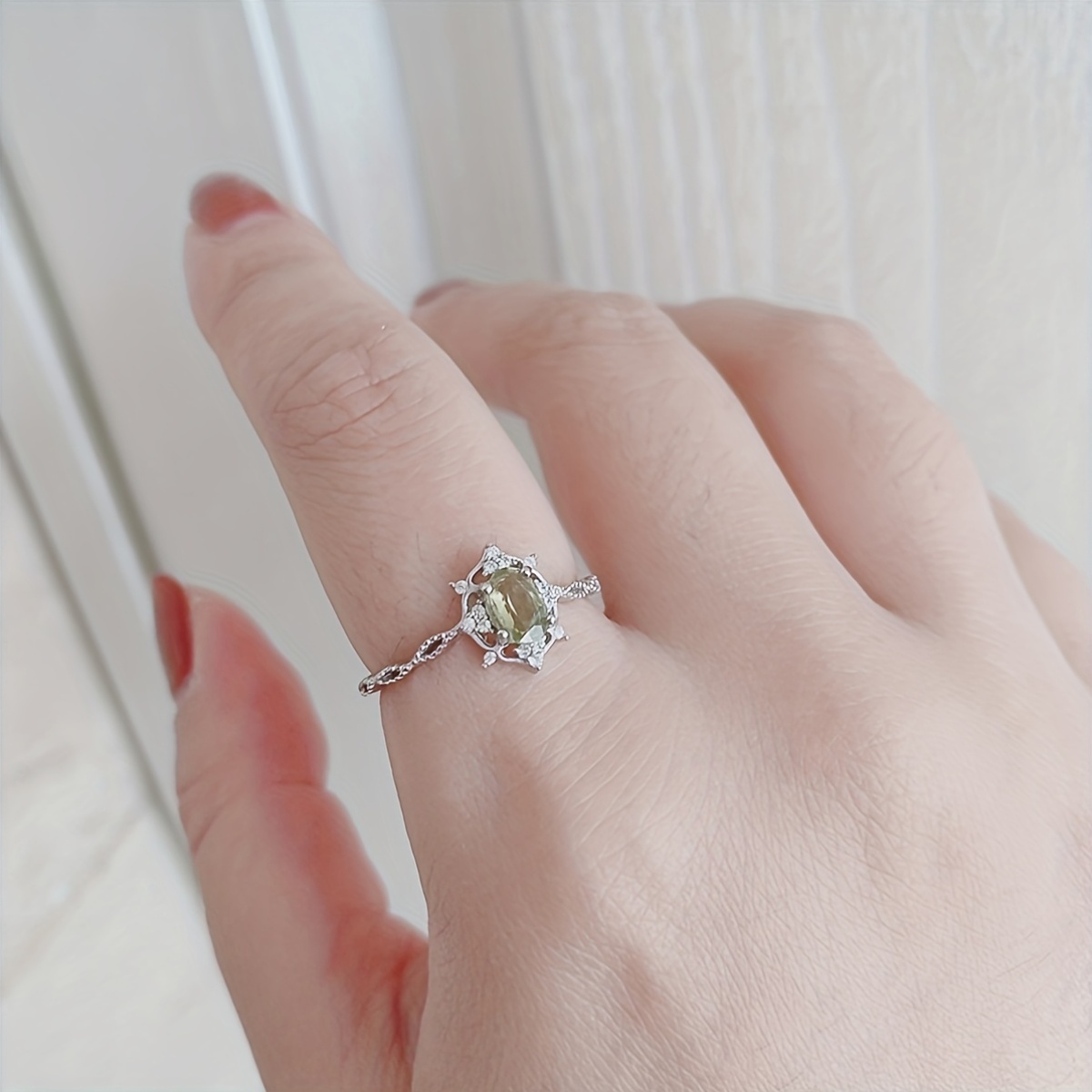 1pc 925 Silver Light Luxury Olive Green Inlaid Vintage Style Ring for Women, High-Quality Jewelry Suitable for Daily and Business Wear, Approximately 1.4g